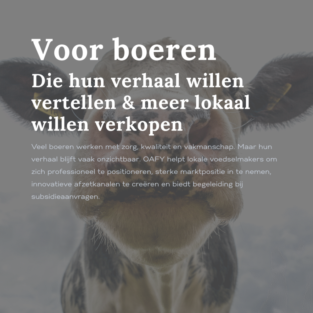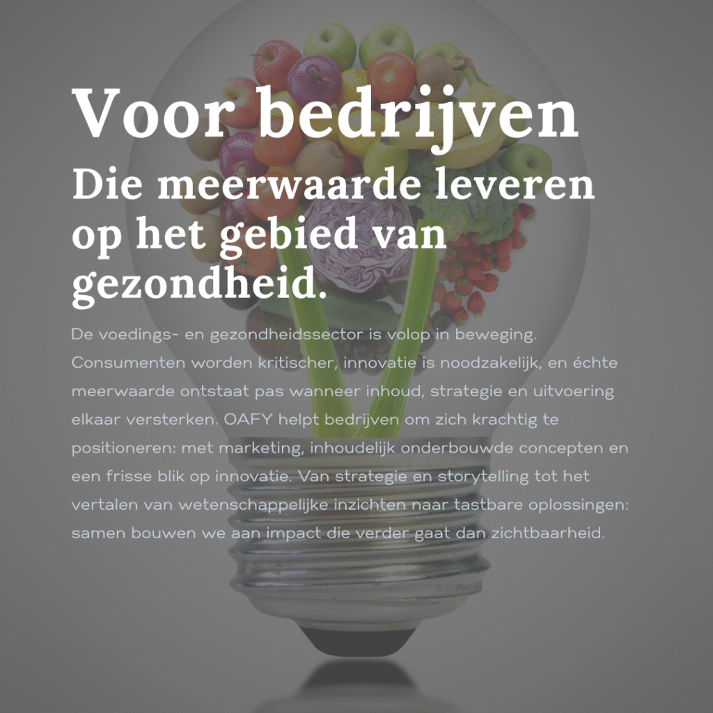OAFY helpt boeren en bedrijven in de voedings- en gezondheidssector om gezonde en duurzame producten professioneel en overtuigend in de markt te zetten. Ik geloof dat succes begint bij zichtbaarheid, geloofwaardigheid en een helder verhaal.